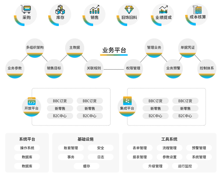 基于對珠寶行業(yè)的理解,整合行業(yè)經(jīng)驗開發(fā)符合珠寶行業(yè)發(fā)展的ERP系統(tǒng),可支持門店銷售體系的各種業(yè)務(wù)流程,包含銷售、采購、庫存管理、會員管理和財務(wù)管理等多種模塊。