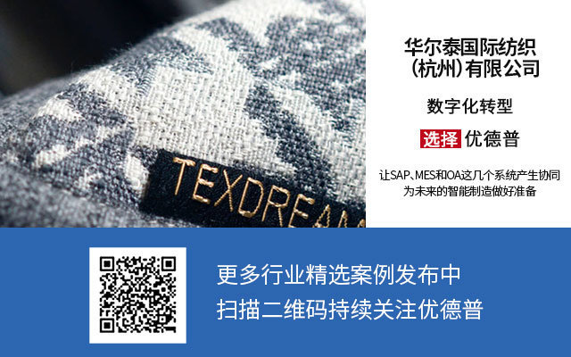 2019年,華爾泰國際紡織緊跟信息化時(shí)代發(fā)展,與浙江本地知名信息化服務(wù)商優(yōu)德普展開企業(yè)數(shù)字化轉(zhuǎn)型方面的合作,雙方以SAP ERP系統(tǒng)為核心,聯(lián)合開發(fā)華爾泰紡織數(shù)字化系統(tǒng),并完成了集成信息系統(tǒng)的一體化建設(shè),進(jìn)一步加強(qiáng)企業(yè)資源管理。