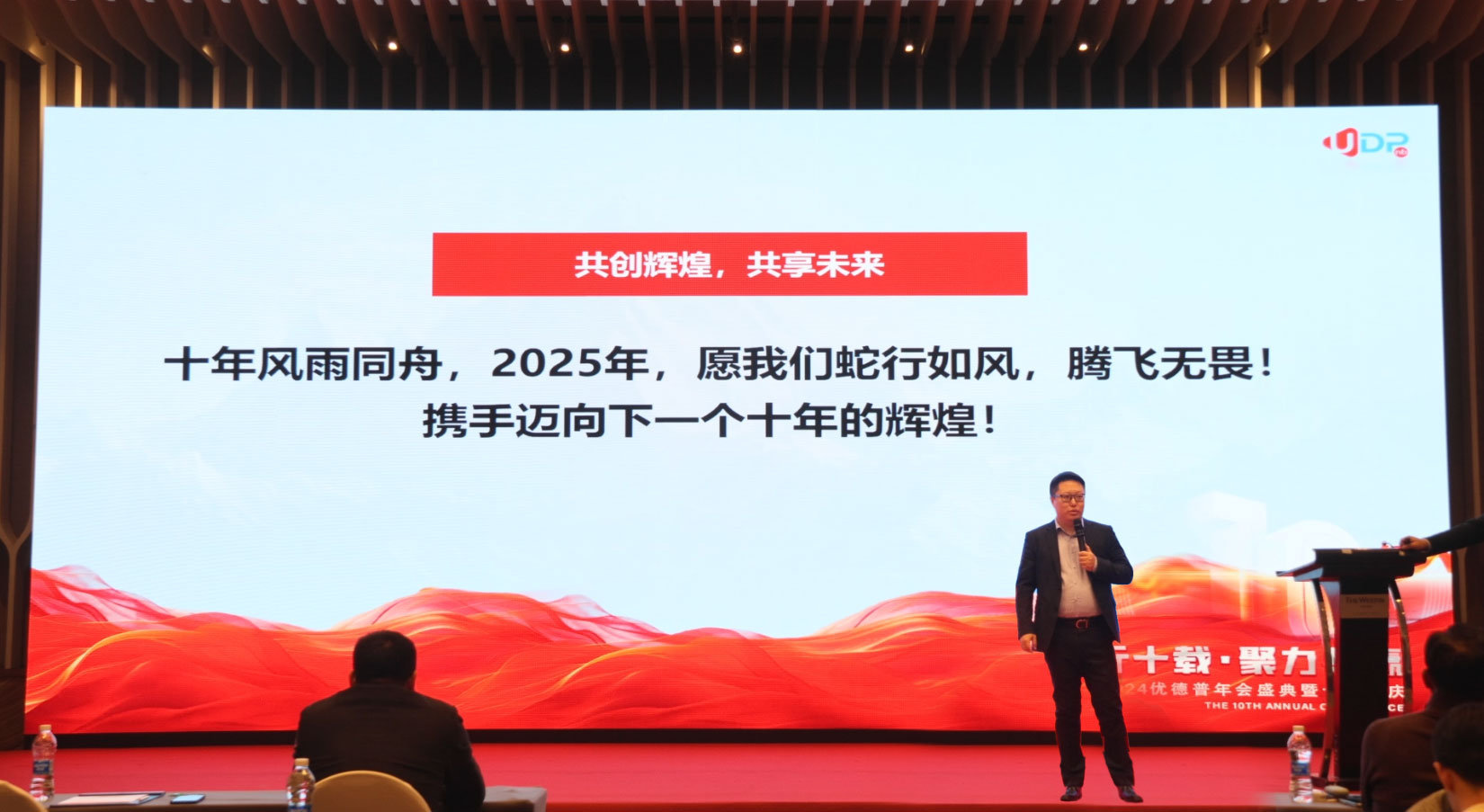 優(yōu)德普董事王玨 王總為大家分享了優(yōu)德普2024年整體業(yè)績情況,并對未來的發(fā)展藍圖進行了展望,描繪了公司邁向新高度的宏偉愿景。并對過往一年辛勤奉獻的同事和勠力同心的合作伙伴表達了感謝!十年風雨同舟,2025年,愿我們蛇行如風,騰飛無畏!攜手邁向下一個十年的輝煌!