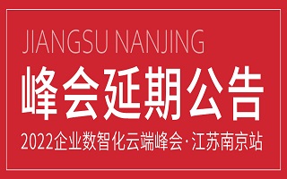2022年8月19日在江蘇省南京市的「乘云馭勢,數(shù)智升級」2022企業(yè)數(shù)字化轉型系列峰會第二站·江蘇南京站活動延期舉辦,活動具體時間將視疫情發(fā)展情況進一步確定。
