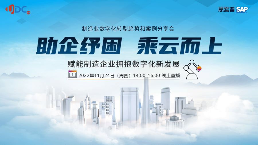 2022年11月24日 (周四) 14:00-16:00,優(yōu)德云將聯(lián)合SAP舉辦“助企紓困 乘云而上 賦能制造企業(yè)擁抱數字化新發(fā)展”線上直播活動。屆時我們將聚焦云端體驗,基于行業(yè)、技術以及場景應用,結合真實案例展開闡述,暢談制造企業(yè)如何把握數智云時代的核心優(yōu)勢,敏捷快速響應市場和環(huán)境的突發(fā)波動變化,致勝末來!