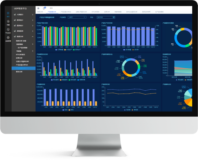 優(yōu)德普BI系統(tǒng)數(shù)據(jù)大屏看板的可視化顯示,通過與企業(yè)ERP、進(jìn)銷存、CRM、OA、生產(chǎn)管理、庫存管理、數(shù)據(jù)管理等企業(yè)管理系統(tǒng),集成進(jìn)行數(shù)據(jù)統(tǒng)計(jì)、分析。改變了傳統(tǒng)數(shù)據(jù)可視化只能顯示單一靜態(tài)圖表的現(xiàn)狀,大大提升了數(shù)據(jù)的聯(lián)動(dòng)管理,加強(qiáng)了業(yè)務(wù)協(xié)同。