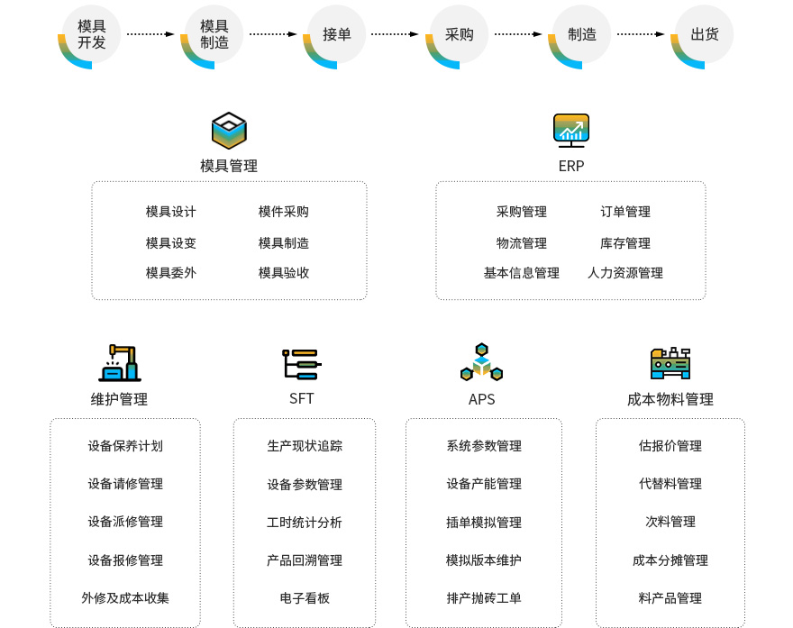 根據(jù)注塑行業(yè)特性,以智能化與靈活性為核心,精細(xì)化管理,實(shí)現(xiàn)一產(chǎn)品多工藝路線,進(jìn)行定制化開(kāi)發(fā)功能,提高企業(yè)核心競(jìng)爭(zhēng)力、實(shí)現(xiàn)長(zhǎng)期經(jīng)營(yíng)目標(biāo)。